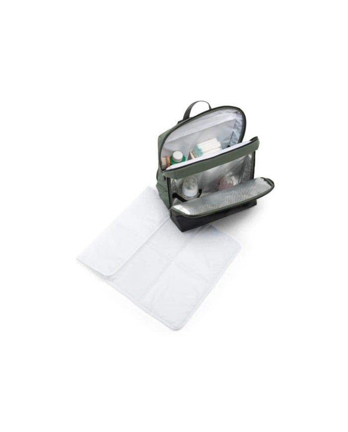 Capiente, molto pratica e anche bella, è curata nei minimi dettagli: è realizzata in tessuto con protezione solare UPF 50+, con inserti in tessuto effetto pelle, ha cerniere resistenti all’acqua, pratica maniglia a tracolla, materassino per il cambio del bambino e ampia tasca termica.