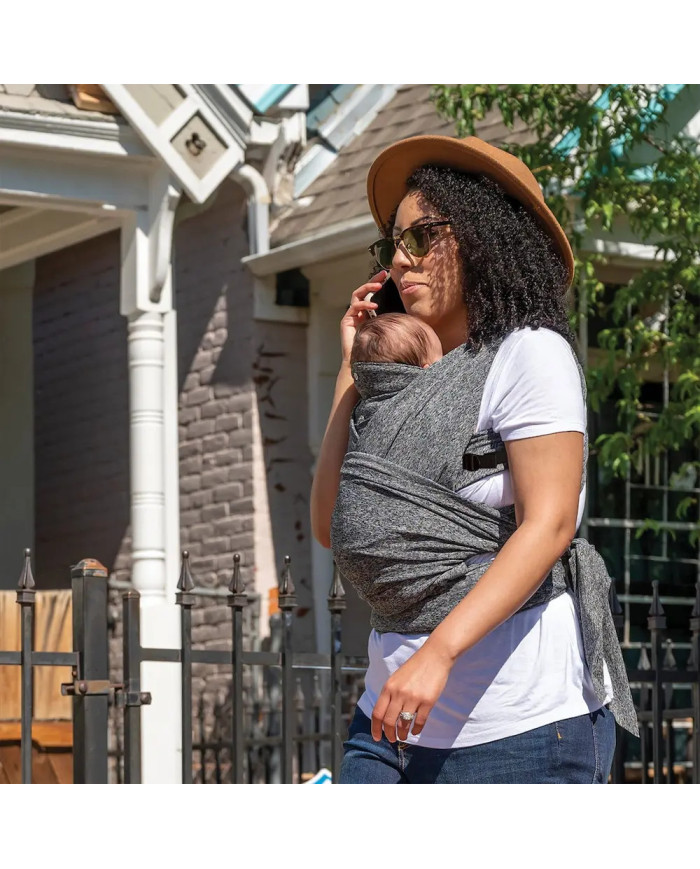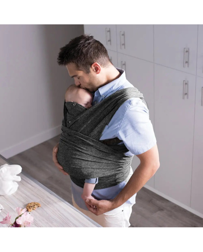 Unisce il comfort avvolgente della fascia alla semplicità di utilizzo di un marsupio ergonomico. -