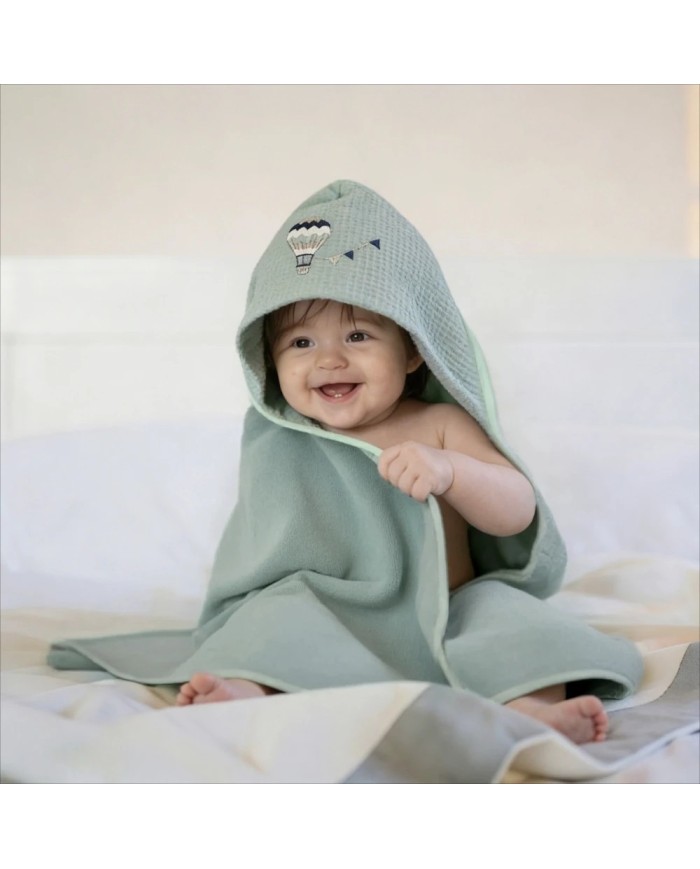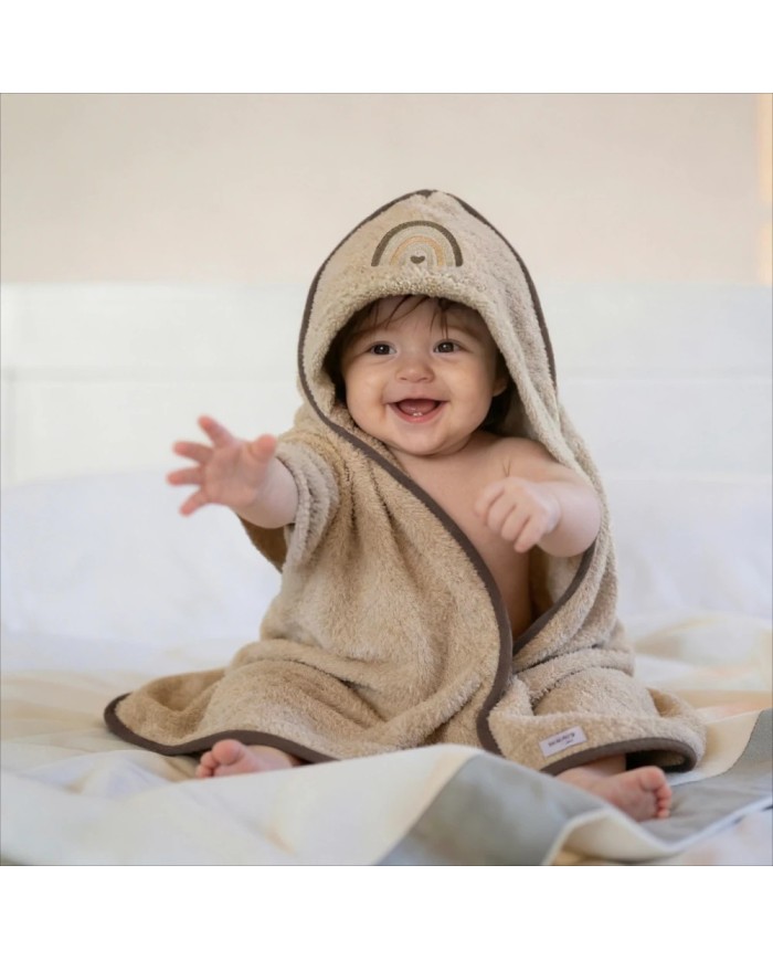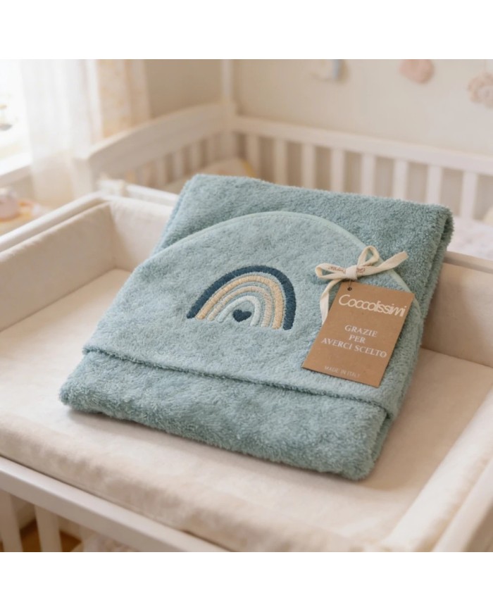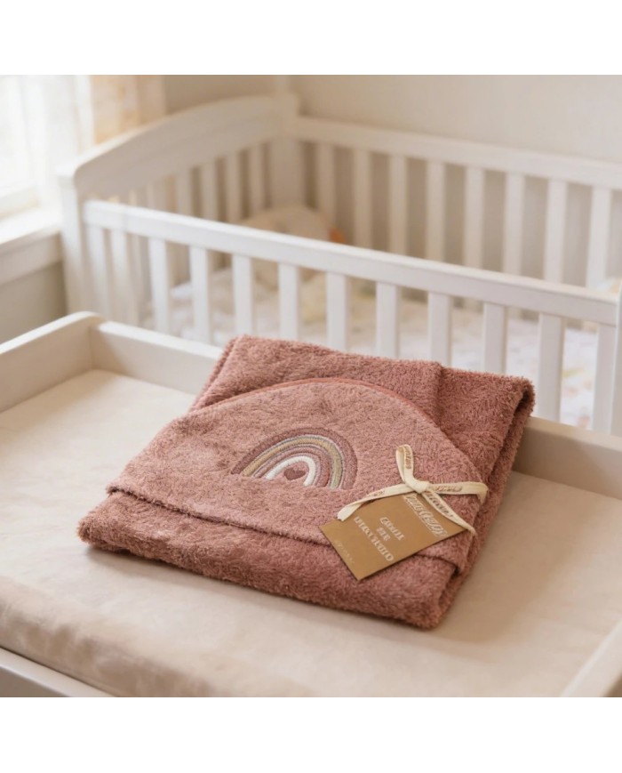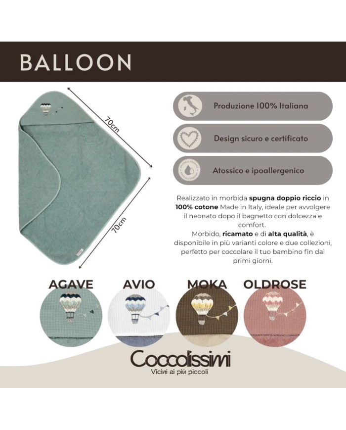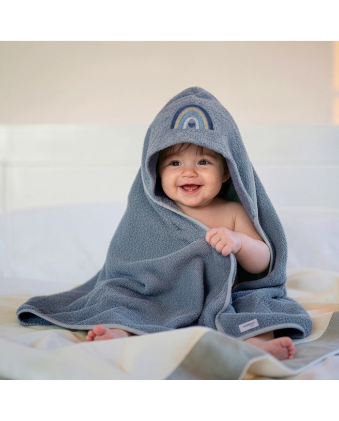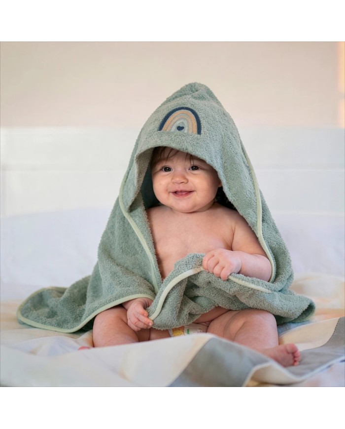 Realizzato in spugna 100% cotone, offre massima assorbenza, morbidezza e delicatezza sulla pelle del bambino. Il ricamo raffinato e i colori tenui delle collezioni Balloon e Rainbow donano un tocco di eleganza e tenerezza, rendendolo anche un’ottima idea regalo nascita.