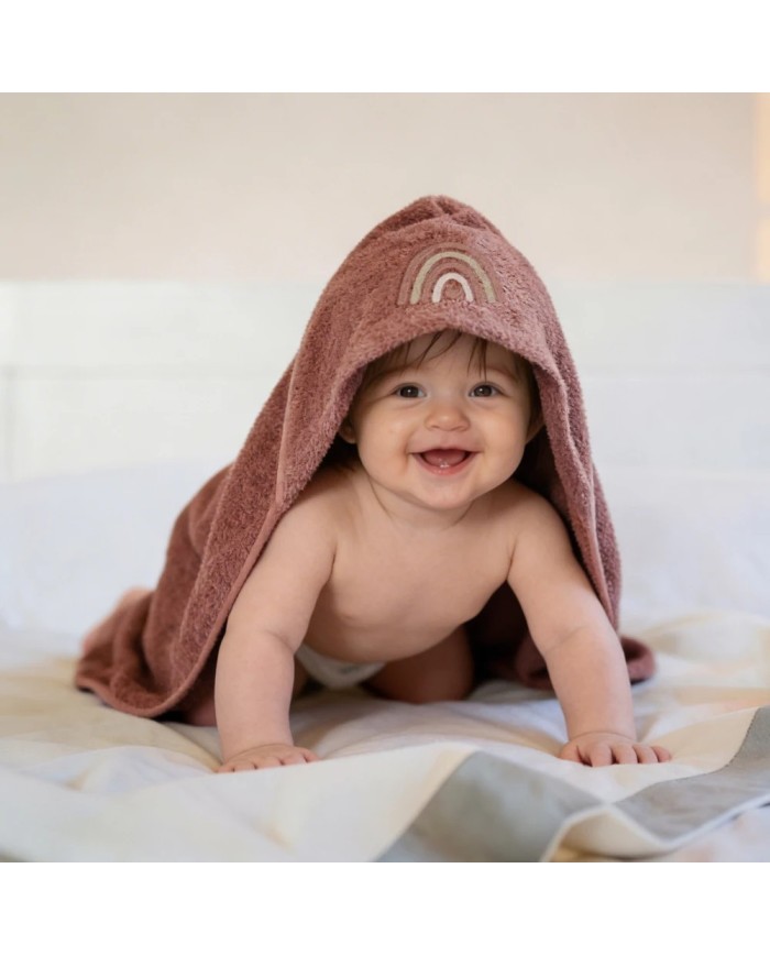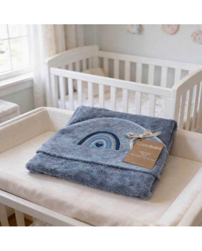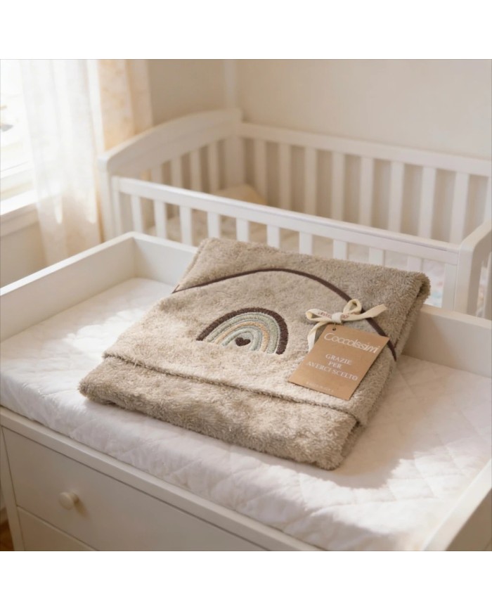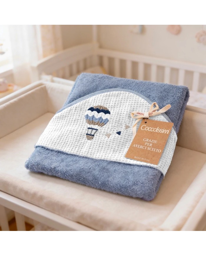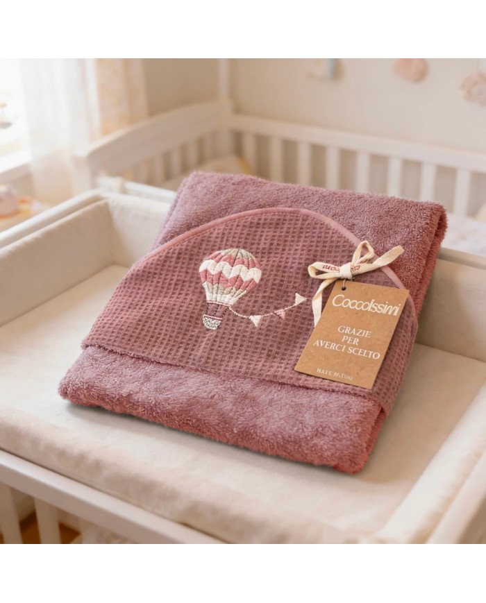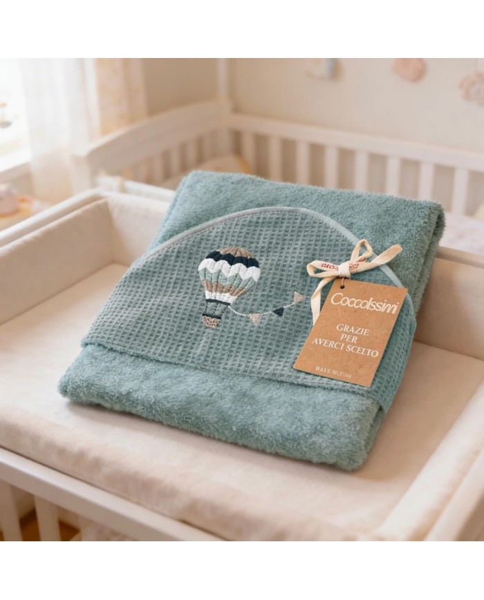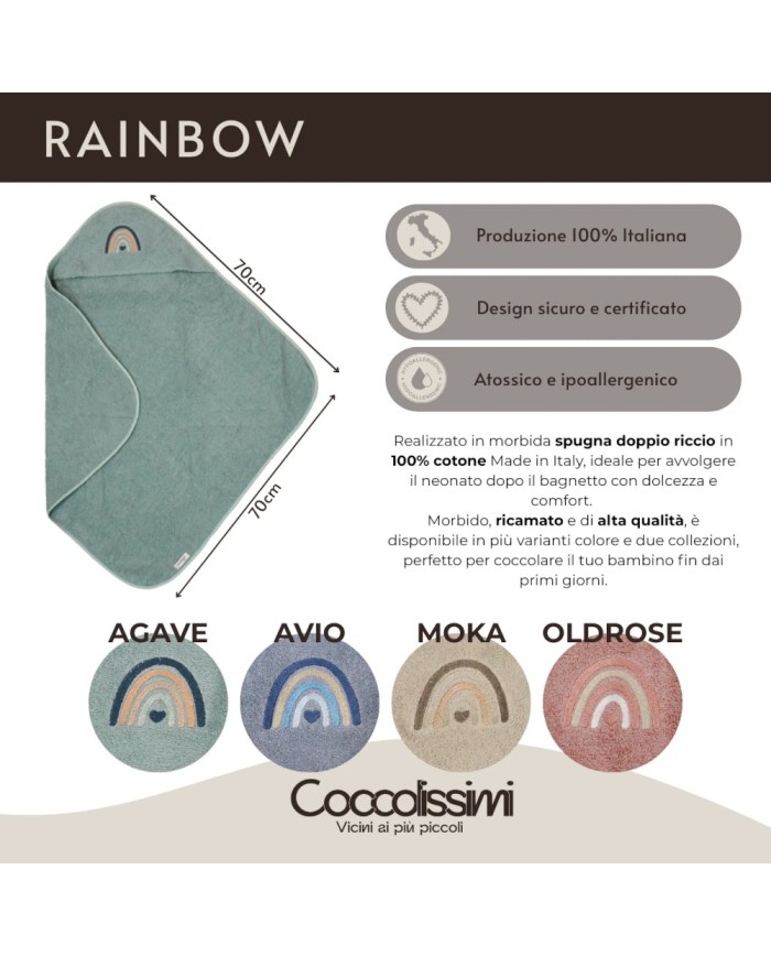 Realizzato in spugna 100% cotone, offre massima assorbenza, morbidezza e delicatezza sulla pelle del bambino. Il ricamo raffinato e i colori tenui delle collezioni Balloon e Rainbow donano un tocco di eleganza e tenerezza, rendendolo anche un’ottima idea regalo nascita.