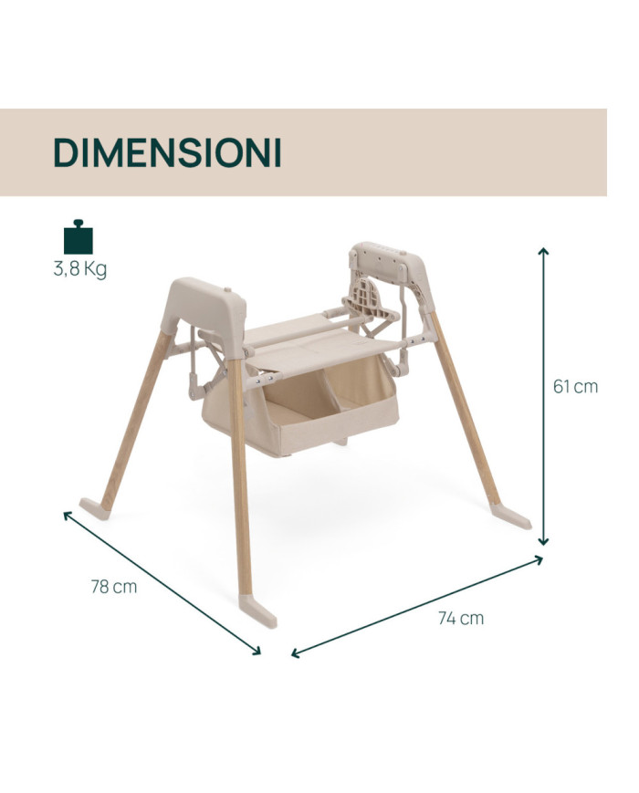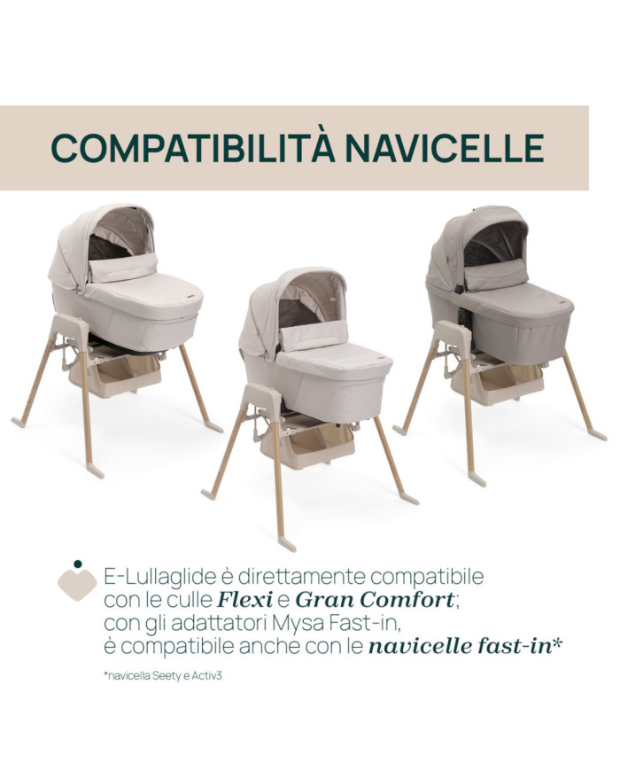 Compatibile con navicelle e sedute Chicco delle linee Mysa, Bellagio, Flexi, Gran Comfort, Seety e Activ3, è la soluzione ideale per cullare il neonato in modo sicuro e confortevole a casa.