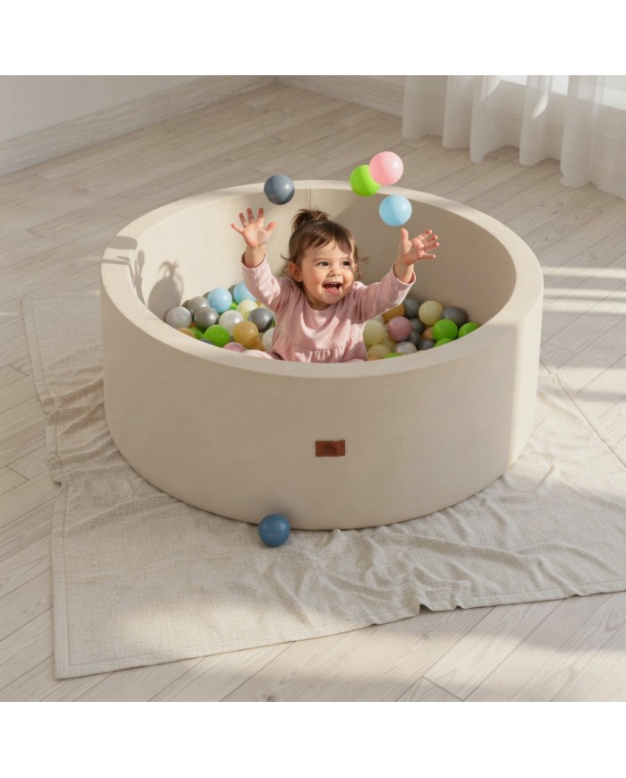 La Piscina di Palline con 200 Palline Moni Toys è realizzata in schiuma di poliuretano rivestita in poliestere, materiali di alta qualità che garantiscono sicurezza e durata nel tempo. Il fondo morbido assicura maggiore comfort durante il gioco. Il rivestimento sfoderabile con cerniera è facile da rimuovere e lavare, rendendo la piscina pratica per l’uso quotidiano.