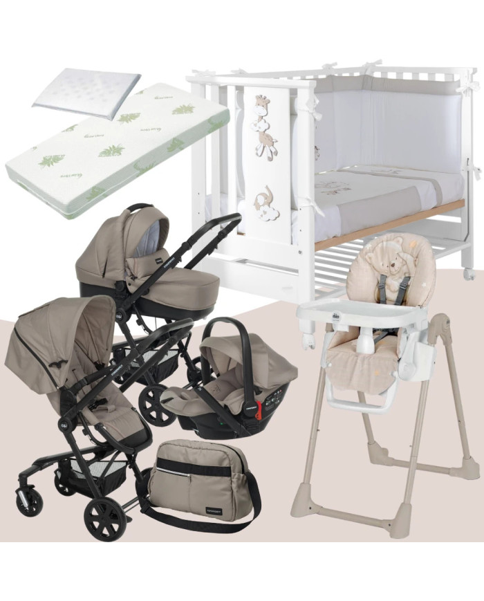 Pensato per prepararvi all’arrivo del vostro bebè con il minor stress possibile, il Kit Gran Risparmio per neonato con Lettino Compact Dolce safari Coccolissimi, tessile per lettino completo Dolce safari Coccolissimi, Trio UP3 i-size Foppapedretti e Seggiolone Pappananna Cam, offre la comodità di poter ricevere a casa più articoli abbinati insieme e con un notevole risparmio.
