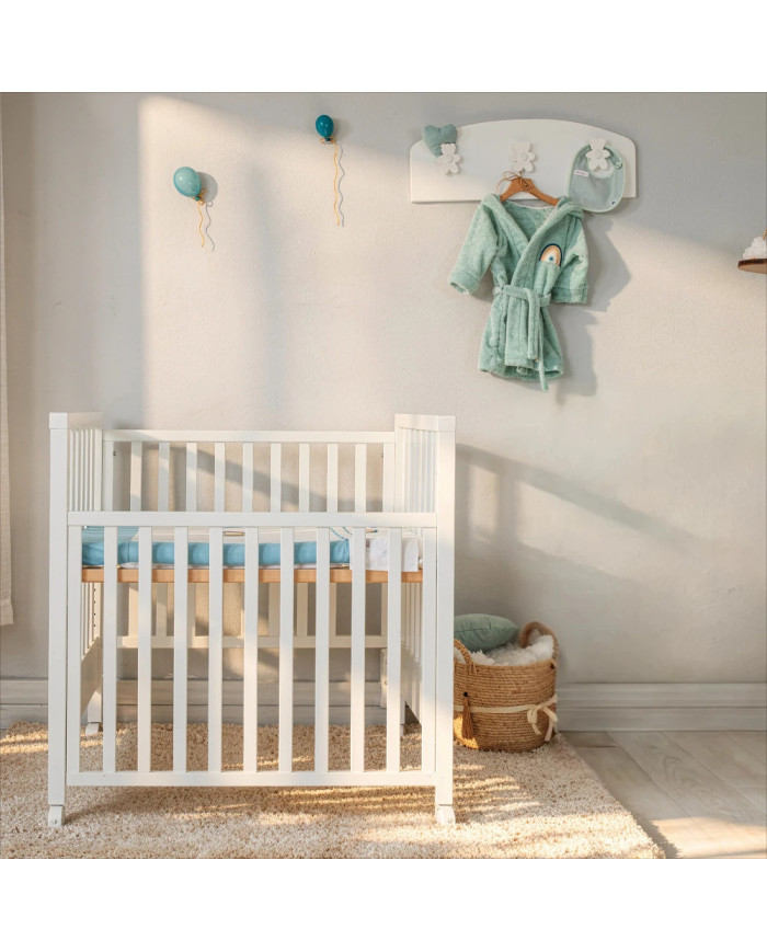 Il cuore del Kit nascita completo è la culla evolutiva Dreamy Coccolissimi, realizzata in legno massello di faggio Made in Italy. Grazie alle 5 configurazioni (culla, culla co-sleeping, lettino, lettino co-sleeping e lettino con mini-sponda), accompagna il bambino dalla nascita fino a circa 4 anni, adattandosi a ogni fase della crescita.