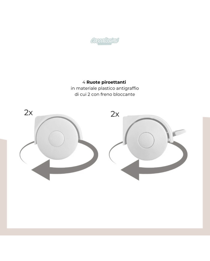 - 4 ruote piroettanti (di cui 2 con freno bloccante)