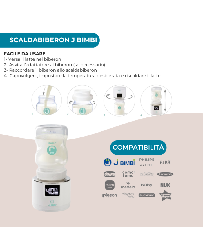 - Universale grazie ai 6 adattatori inclusi: raccontabile con il biberon J BIMBI e con i biberon delle principali marche