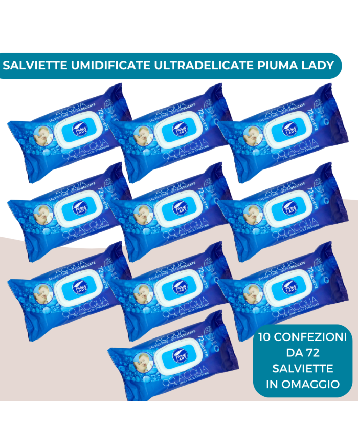 - 10pz Salviette Ipoallergeniche e Delicate per Neonati a base d'acqua - Piuma Lady (OMAGGIO)