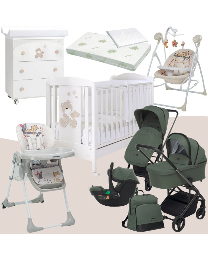 Pensato per prepararvi all’arrivo del vostro bebè con il minor stress possibile, il Kit Gran Risparmio per neonato con Cameretta Classic Simpatico completa Coccolissimi, Trio TicToc i-size Foppapedretti, Seggiolone Meeting Foppapedretti e Sdraietta musicale Carillon Foppapedretti, offre la comodità di poter ricevere a casa più articoli abbinati insieme e con un notevole risparmio.