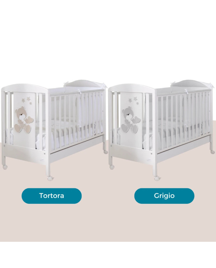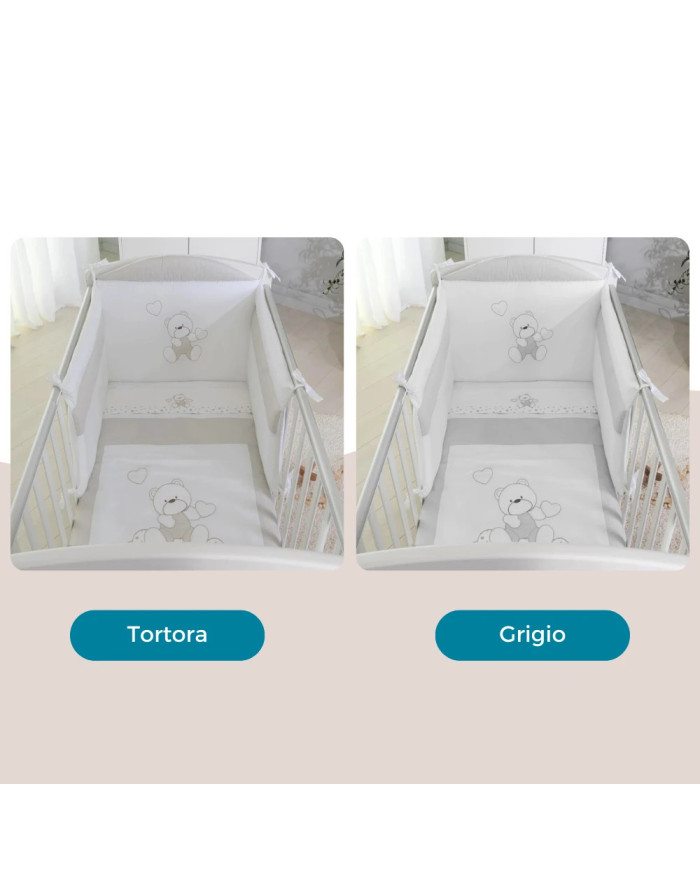 - Tessile ricamato lettino composto da: paracolpi, piumone sfoderabile, imbottitura piumone, lenzuolo sopra, lenzuolo sotto con angoli, federa
