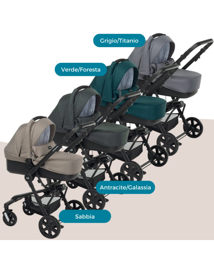 - Trio Up3 i-size Foppapedretti (Telaio, Passeggino, Navicella con materassino, Ovetto auto, Capottina, Parapioggia, Cestino porta-oggetti)