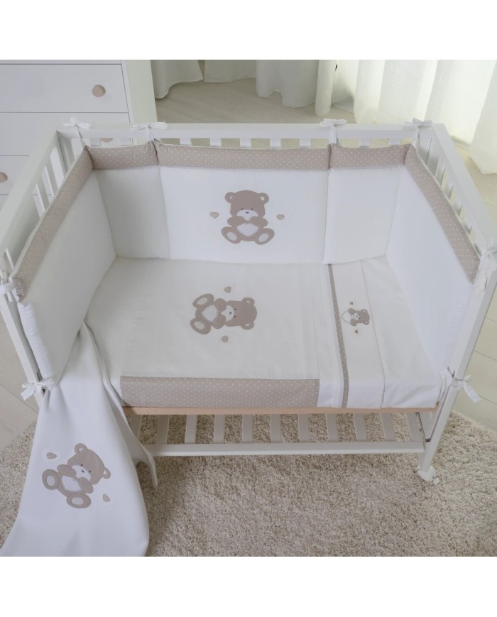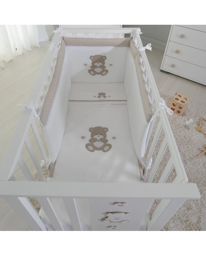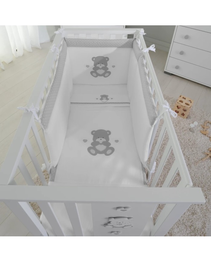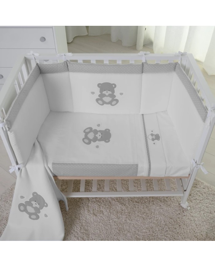 Paracolpi + Piumino sfoderabile + Set lenzuola 3pz per Lettino Compact fiancoletto e Next2Me Forever Orso cuore Coccolissimi