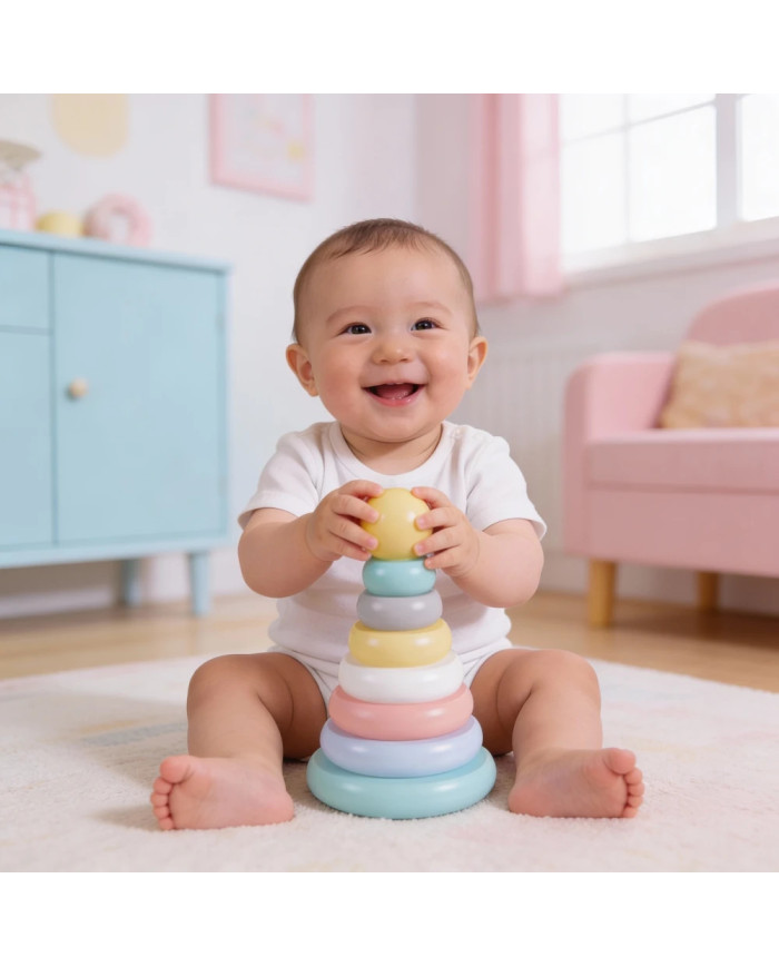 Gli anelli impilabili in legno 2542 offrono un'esperienza sensoriale e cognitiva che aiuta il bambino a sviluppare la motricità fine e la coordinazione. Realizzati con materiali resistenti e atossici, sono ideali per bambini a partire da 1 anno.