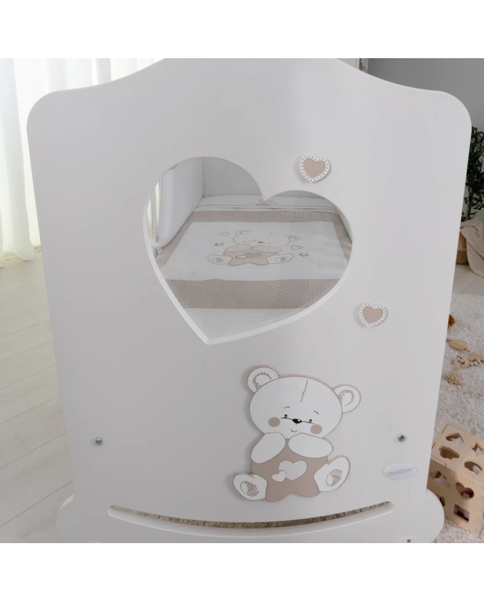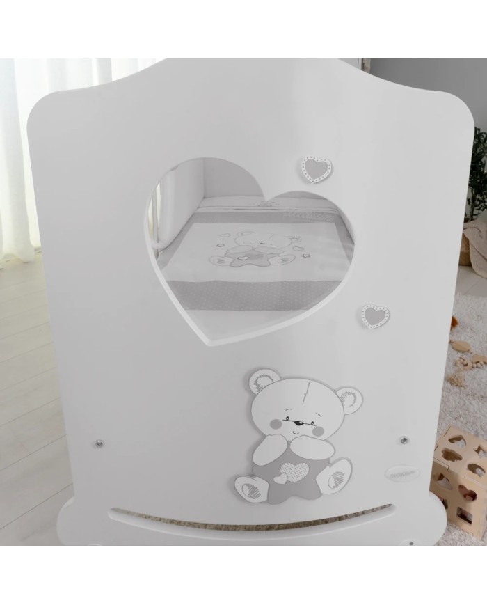 Una finestra d'amore alla quale affacciarti ogni volta che vorrai vegliare sulla nanna del tuo bebè! Il lettino Timmy di Coccolissimi col suo caratteristico oblò a forma di cuore e la base a dondolo è la coccola che ogni piccino merita.