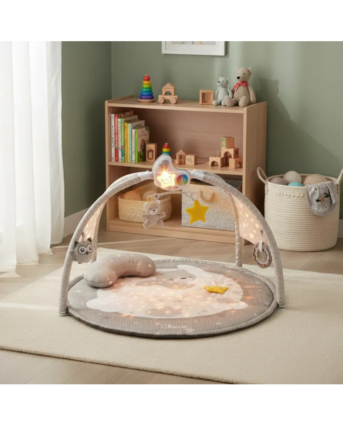 • Il soffice tappeto ha grandi dimensioni (83 cm diametro) ed è dotato di un cuscino morbido ergonomico, ideale per giocare a pancia in giù o da seduti; tappeto, cuscino e giochi in tessuto sono lavabili in lavatrice