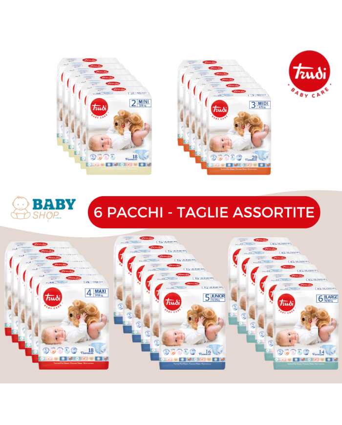 Multipak Pannolini Trudi Baby Care 6 Confezioni – Misure Assortite