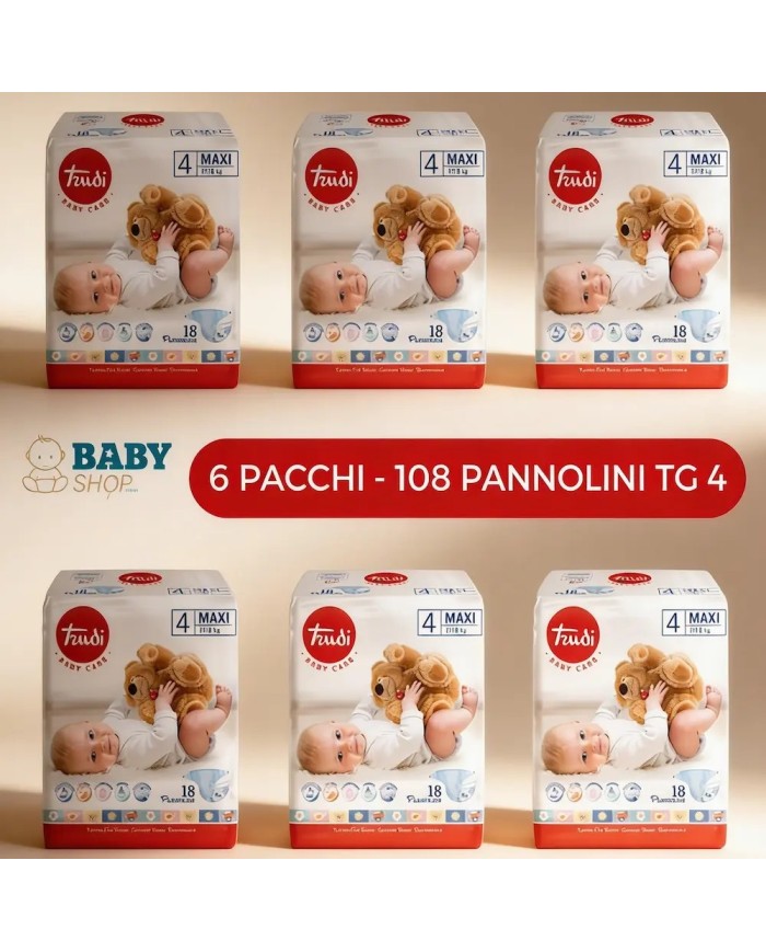 - Taglia 4 Maxi (7-18 kg) – 18 pz x 6 confezioni