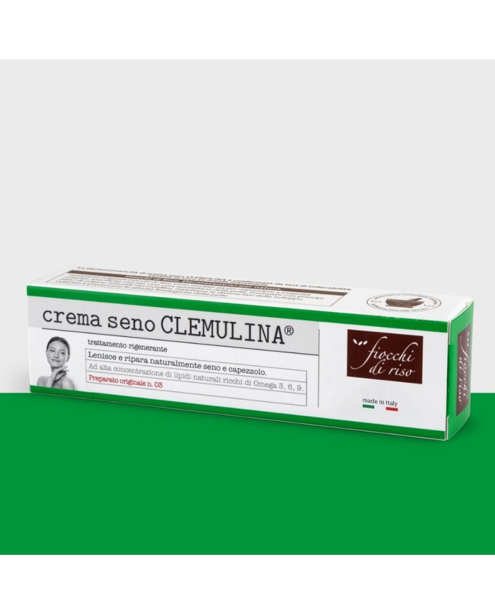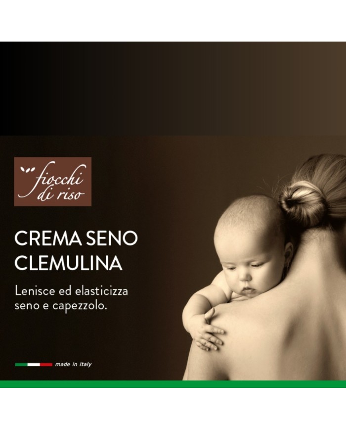 La Crema seno Clemulina Fiocchi di Riso è indicata a partire dal settimo mese di gravidanza per idratare e rinforzare le zone sensibili di seno e capezzolo. La sua formulazione aiuta a mantenere la pelle elastica e nutrita. Per una routine completa pre-parto può essere abbinata a detergenti delicati Fiocchi di Riso.