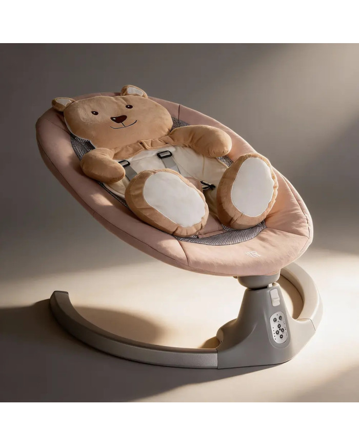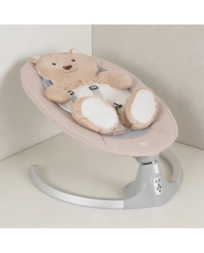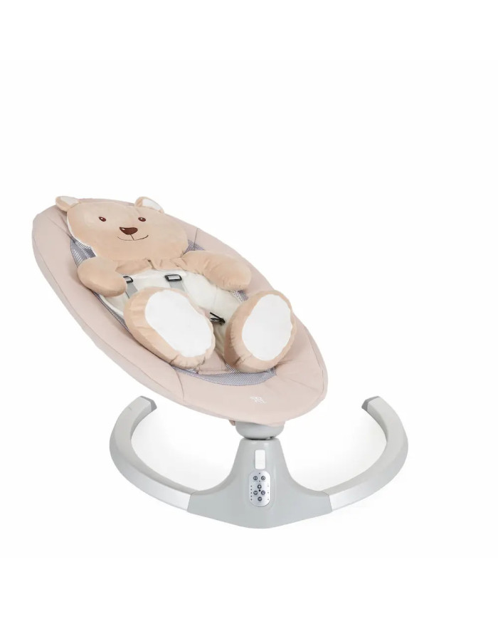 Altalena elettrica Ari Bear beige di Moni per neonati da 0+ mesi fino a 9 kg, con 5 velocità di oscillazione, 12 melodie, timer programmabile e telecomando incluso. Rivestimento lavabile e cintura di sicurezza a 5 punti per comfort e sicurezza.