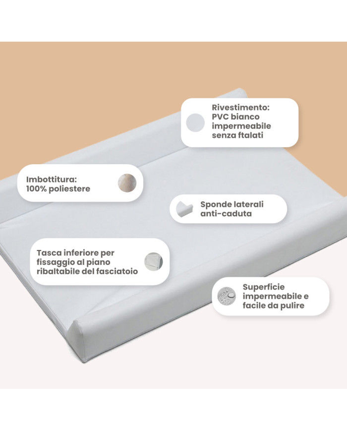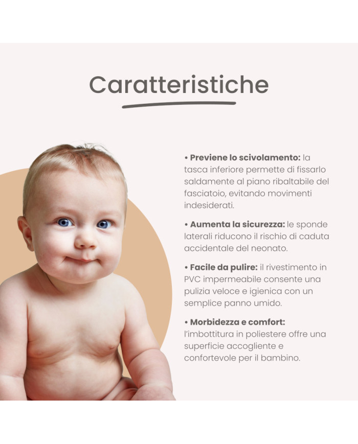 Sì, grazie alle sue dimensioni standard (80x48 cm) e alla tasca posteriore, è compatibile con la maggior parte dei mobili fasciatoio.