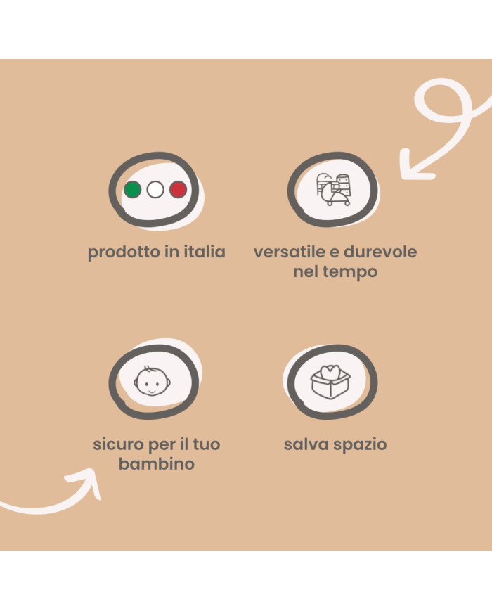 Il materassino fasciatoio Palla Pallina è progettato per offrire la massima sicurezza durante il cambio pannolino. Le sponde laterali anticaduta proteggono il neonato da movimenti improvvisi, mentre la tasca posteriore assicura stabilità al piano d’appoggio.