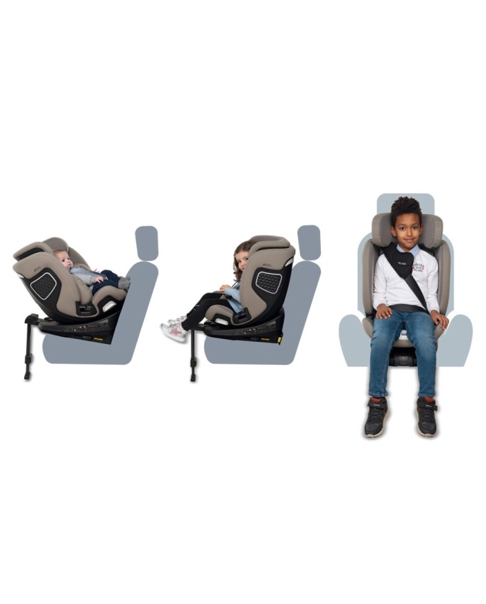 Il Seggiolino auto 40-150 cm FP360 i-Size Foppapedretti è omologato ECE R129/03 dalla nascita fino a 12 anni circa, con seduta girevole a 360° reclinabile, installazione Isofix e utilizzo sia in senso contrario sia nel senso di marcia