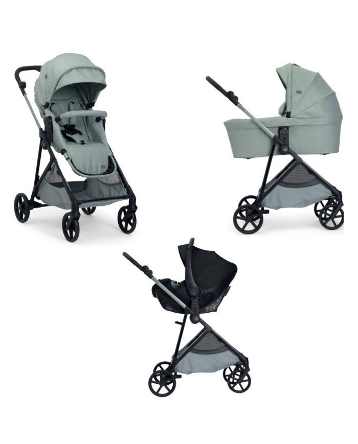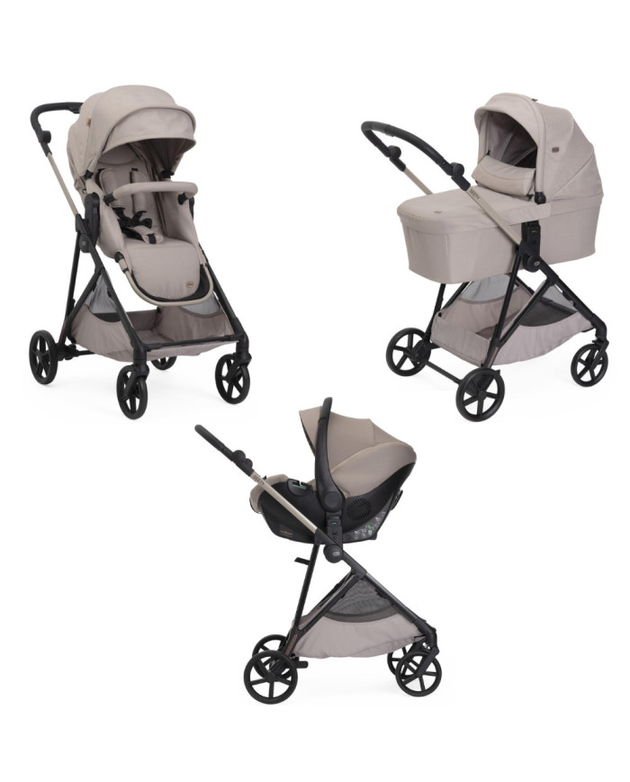 Composto da passeggino, navicella e seggiolino auto i-Size, unisce design urbano, comfort superiore e massima sicurezza. La nuova versione presenta imbottiture più soffici, telaio colorato e tessuti moderni, per uno stile contemporaneo e funzionale.